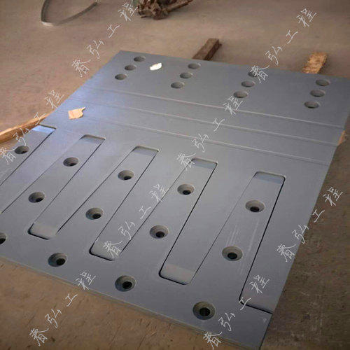 SF伸縮裝置主要結(jié)構(gòu)是由梳型鋼板、不銹 鋼滑板、橡膠防水層、高強(qiáng)錨固螺栓組成 2.主要特性:防水、防塵、防震;適用用手各一畫 種結(jié)構(gòu)的橋梁,伸縮量大,使用范圍廣。 3.SF梳型鋼板伸縮裝置示意圖。