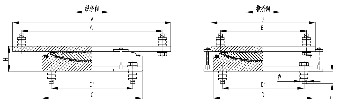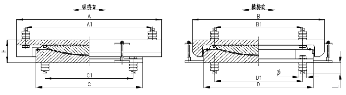 LQZ高承載全封閉球型支座的轉(zhuǎn)角是由中座板的凸球面與下座板上的球面四氟板之間的滑動來實現(xiàn)的。通常由于支座的轉(zhuǎn)動與上部結(jié)構(gòu)的轉(zhuǎn)動不復(fù)合,而在中座板和下座板之間形成滑動面。根據(jù)上部結(jié)構(gòu)與支座轉(zhuǎn)動的相對位置,球面轉(zhuǎn)動方向可以與平滑動方向一致或相反。如果兩個轉(zhuǎn)動復(fù)合,則無平面滑動。